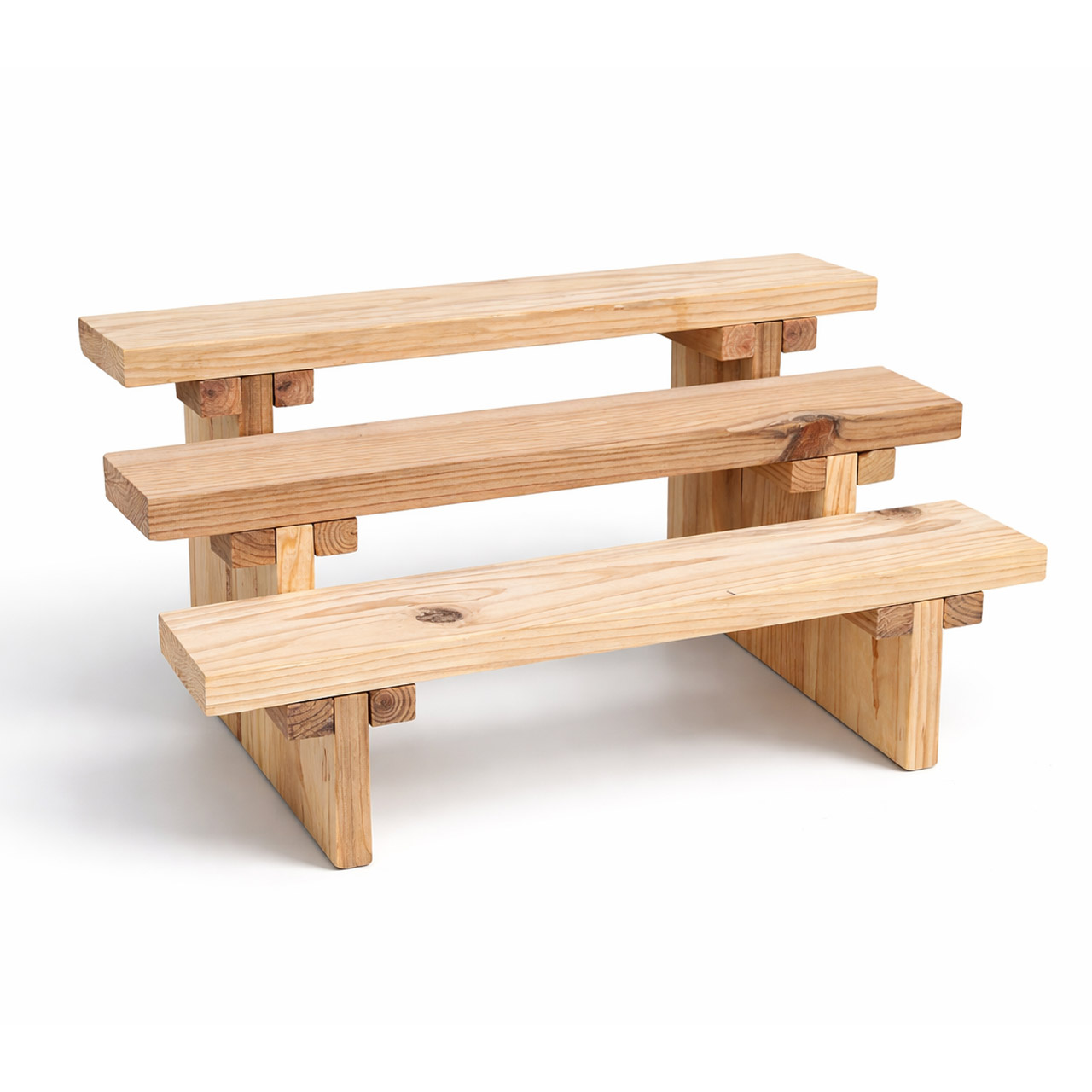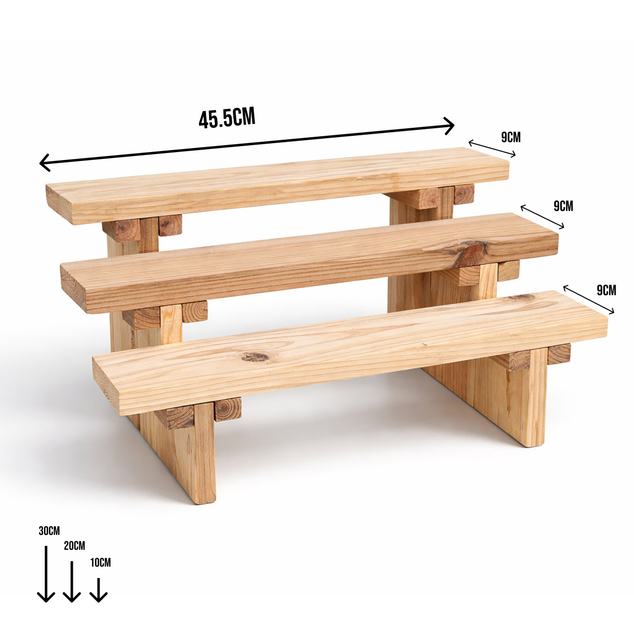 Collapsible Wooden Staircase Display Stand – 3-Tier Customizable Organizer for Craft Fairs & Artisan Markets