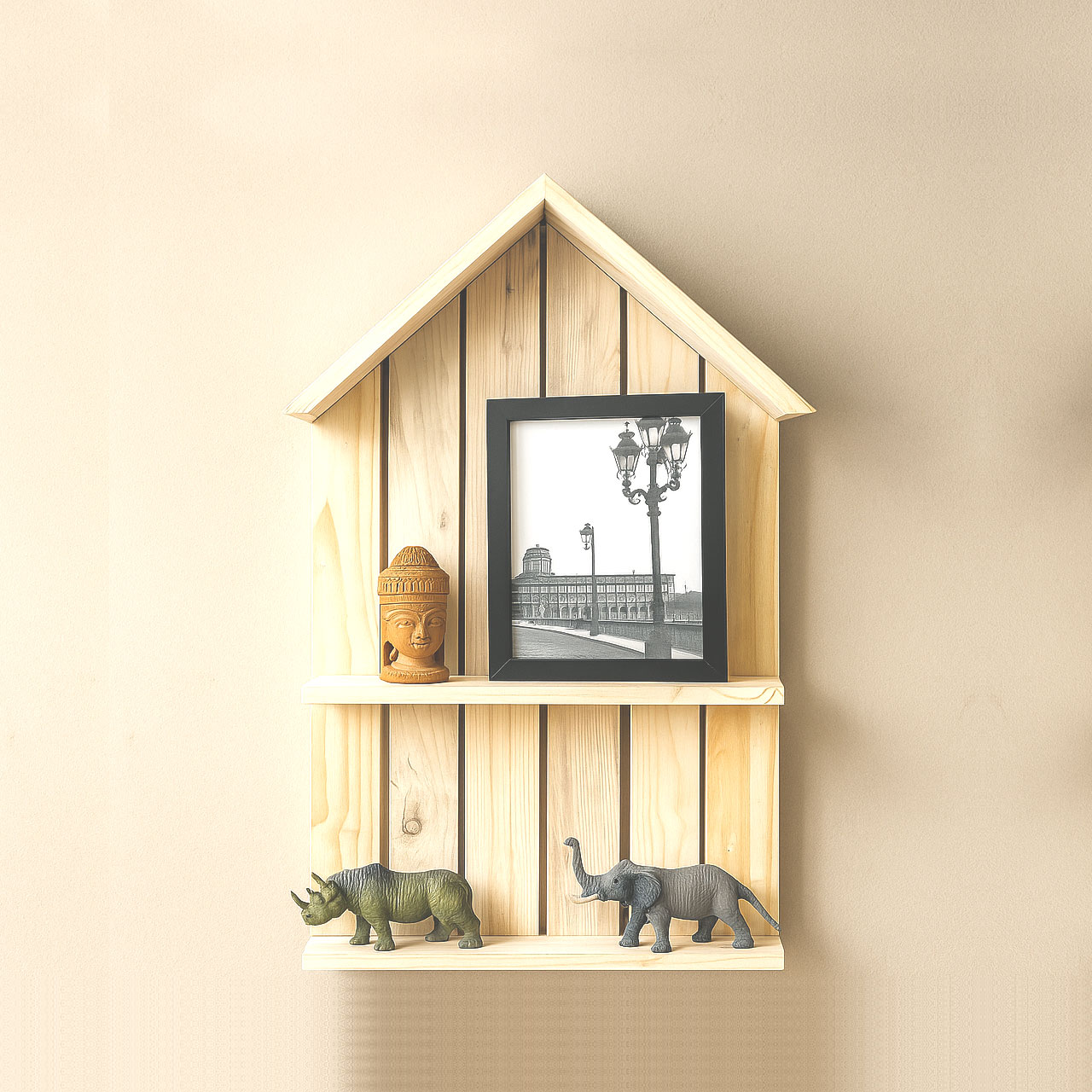 Give your walls a charming upgrade with this Mini House Design 2-Tier Wall Shelf, a perfect blend of aesthetics and functionality. Designed in an eye-catching hut shape, this handcrafted pinewood shelf is more than just decor—it’s a sturdy and stylish storage solution for your home or office.